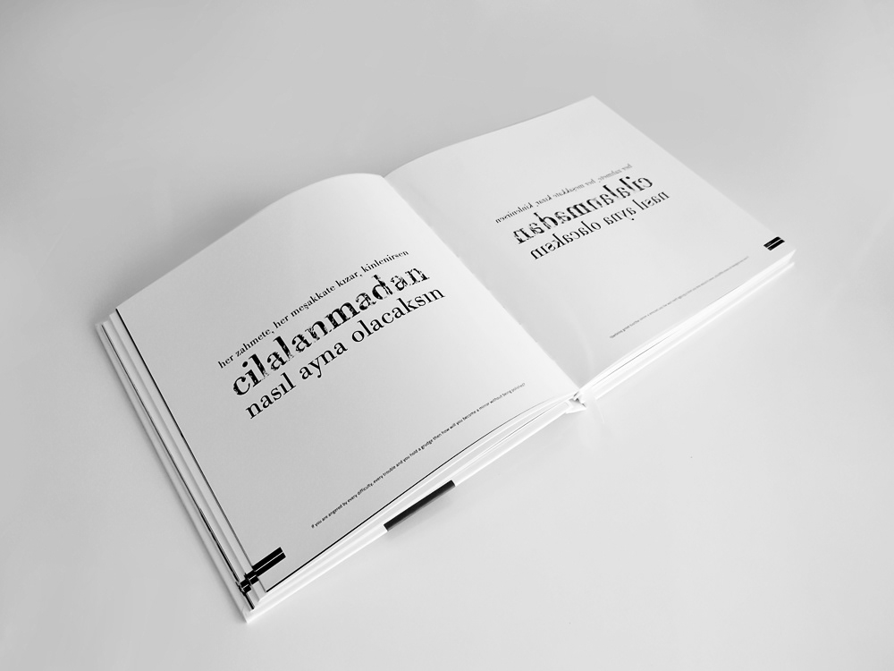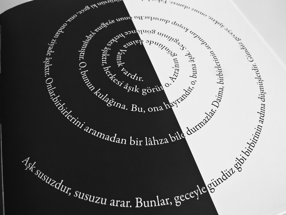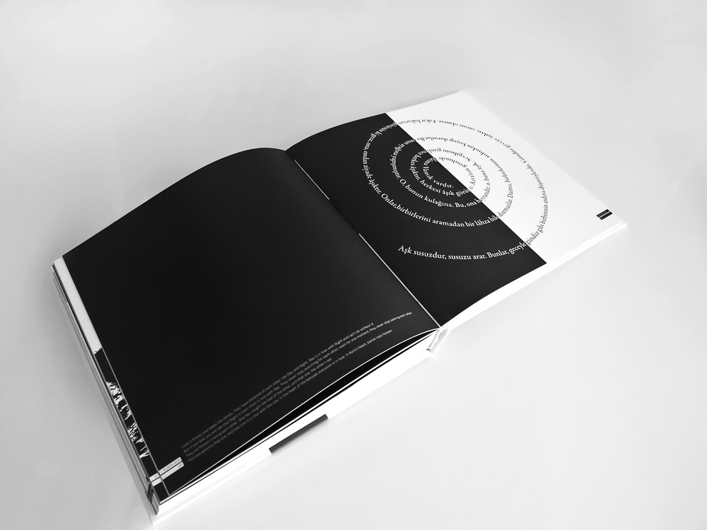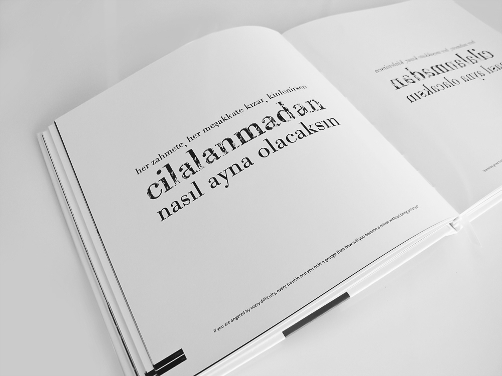The book includes 100 different typographic design created with 100 different quotes from Mevlana's Mathnawi.